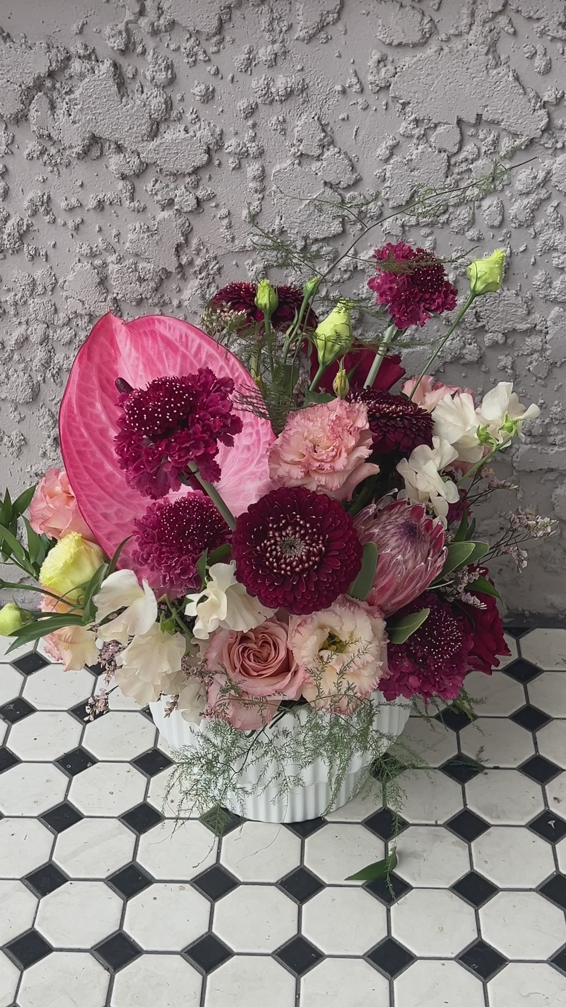 Our Large Valentine’s Arrangement is the ultimate statement of luxury and romance. Designed in a stunning white pedestal vase, this grand arrangement is overflowing with an abundant mix of premium roses and exceptional deluxe florals, expertly layered for dramatic height, fullness, and movement. Every detail is intentionally curated by our floral designers to create an unforgettable centerpiece that commands attention and elevates any space.